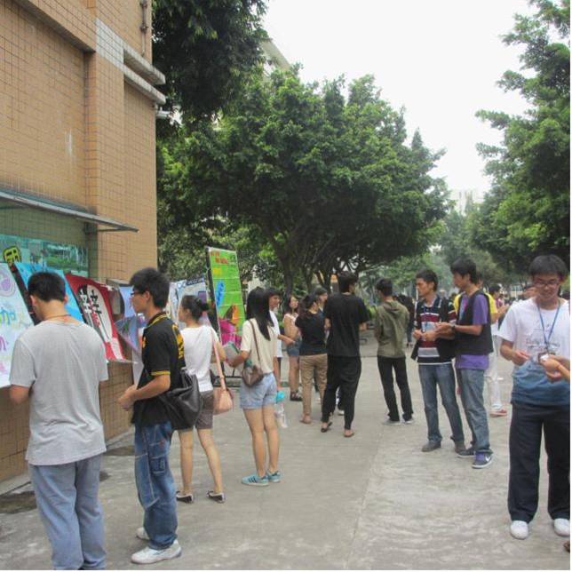 参加此次海报设计大赛的社团9月21日在我校西校区学生之家前举行。中午12:00,大量新生进入学生之家前,各个海报形式多样、内容丰富,突出自己社团的特色,很快便被这里的社团宣传海报吸引,纷纷驻足观看。我们的干事也向过路的学生分发选票,同学们根据自己的兴趣爱好,寻找自己的社团,并给他们喜欢的社团投上宝贵的一票。在投票完后,我们收集好选票,统一保管好。