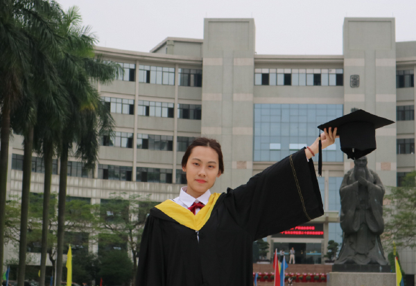 对生活充满热爱、对万物充满好奇,是一个热爱学习、尊敬师长的女子。在校三年担任学委一职,被评为“优秀学生干部”,喜欢摄影,获得微纪录片大赛一等奖,喜欢自己的专业,与小伙伴合作完成的“古桥建筑文化与修复研究”项目获广东省立项。她认为:昨日,不过是行云流水,她将一切归零,重新出发,走向自己梦想的繁花锦地。