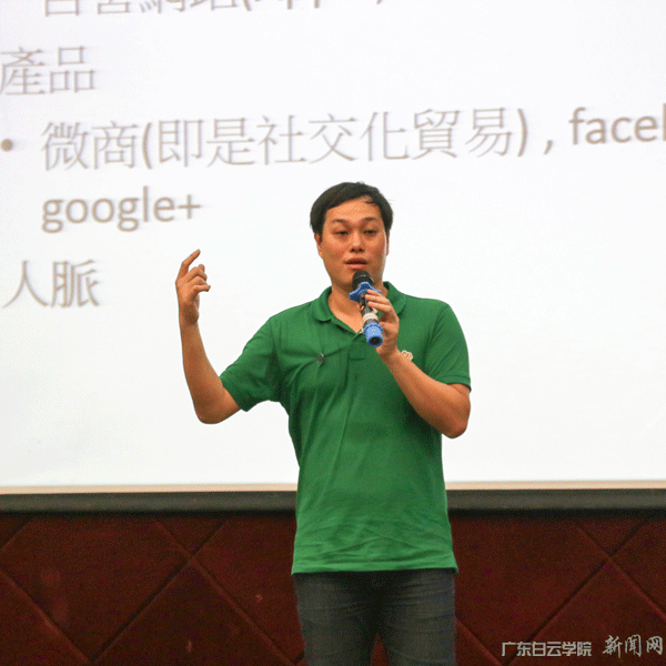 5月11日下午,我校白云大讲堂第165讲隆重开讲。学校邀请到深圳泰利联合贸易国际有限公司创始人何正源先生作“下一个人口红利-互联网行业”专题讲座。