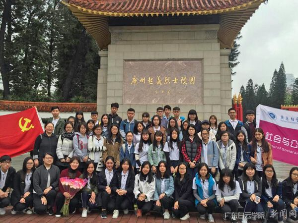 清明节是二十四节气中最具人文历史的节日,人们往往会在这节日里祭祀祖先,缅怀先烈。为激发同学们的爱国主义情感,同时以实际行动践行“雷锋月”活动,学习雷锋精神。广东白云学院社会与公共管理学院党总支、教工党支部及学生党支部、团总支学生会于2017年3月25日上午组织了“广州起义烈士陵园”扫墓活动。参与本次活动的有社管学院党总支书记岳增玲,教工党支部书记、办公室主任郭小曼,党总支组织委员兼学生党支部书记曾萌,党总支宣传委员王婷,教师党员李婷,同行的还有学生党支部干部,团总支干部以及14名优秀党员和12名团学干事,共54人。