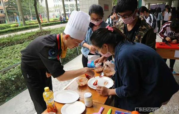 本次活动还充分发挥了广东白云学院东、西校区的协作精神,邀请了东区旅游系西餐协会及调酒协会的老师和同学参与到活动中,由专业协会的同学对参赛选手进行现场的专业指导,并带来精彩的调酒表演,老师和同学的专业点评更是使本次活动更专业,更具内涵意义。