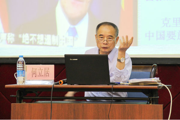 4月28日,由校团委和学生处举办的白云大讲堂第140讲 “学术前沿之一带一路战略的南海严峻局势分析”在儒学堂隆重开讲。主办部门特邀何立居教授为同学们作了“一带一路战略的南海严峻局势分析”的专题讲座。