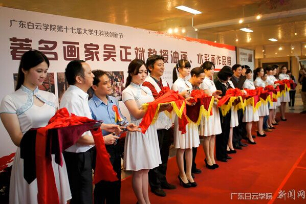 5月8日下午,由广东白云学院主办、广东省高校美术与设计教育专业委员会协办的“著名画家吴正斌教授油画、水彩画作品展”在我校德艺楼隆重举行。我校校长曾小彬教授、广东省高校美术与设计教育专业委员会副秘书长孙黎教授、广东省广播电视发展中心影视节目总监陈宇湘先生、广东省家居建筑装饰材料商会副秘书长杨传辉先生、中山大学美术研究所所长许江博士,广东白云学院艺术设计学院陈华钢教授等领导、嘉宾出席了作品展并为作品展剪彩。