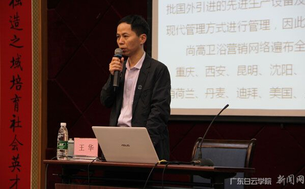 4月22日下午,广东白云学院的经典文化节目白云大讲堂之第88讲在儒学堂举行。广东尚高科技有限公司常务副总裁王华担任此次的主讲嘉宾,主讲的题目是“当前企业转型升级的趋势和发展机遇”。