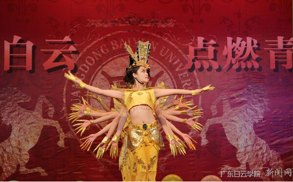 灯光璀璨,歌舞升腾。12月27日晚,由学生处和团委联合主办的广东白云学院第十六届校园文化艺术节闭幕式暨2014年元旦文艺晚会在东区大礼堂隆重举行。学校副董事长谢少华、党委书记刘剑锋等领导和近千名学生代表参加了晚会。本次晚会在东区大礼堂举行,场面壮观,气氛非常热烈。