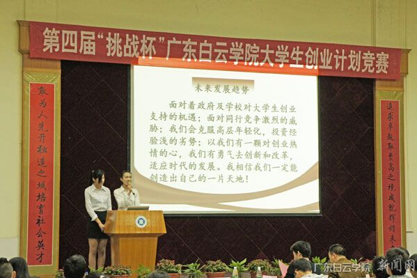 3月24日晚,我校第四届“挑战杯”广东白云学院大学生创业计划竞赛在学术报告厅隆重召开。8位评委老师、15支参赛队伍及学生共200余人参加了此次竞赛活动。