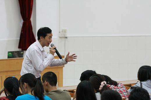 张晓农教授早年毕业于中国人民大学,是国内较早研究职业规划的人力资源专家之一。他从大学生求职心态与期望开始分析,解读了大学生的求职困惑,回答了什么是“好”工作?在校学生如何提高职业素质才能找到“好”工作?在讲座伊始,张晓农列举了苹果之父---乔布斯、背包客和走遍全中国的陈超波的事例,告诉在场的同学们,每个人都有梦想,有梦想就要学会规划去实现。并从企业对人才的需求调研结果展开分析,教育当代大学生如何看待学历与能力、如何看待应届毕业生应有工作经验问题、当今大学毕业生与企业需求人才的差距、面试时企业最看重的几个大学生的特质,以及大学期间如何学习,如何为未来职业发展做准备,深刻阐述了职业生涯成功的秘诀——内、外职业生涯和谐发展的理念,鼓舞每一个大学生做自己人生的编剧、导演和主角,扎实搞好自我的职业生涯规划。