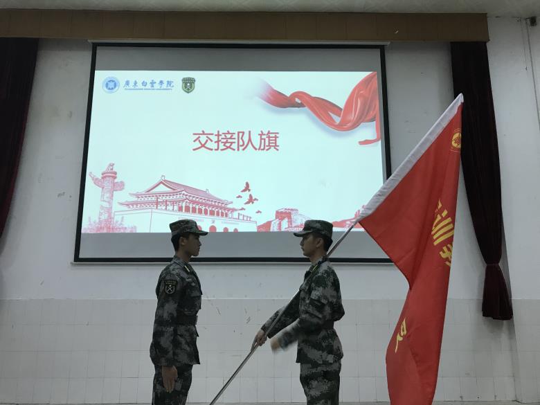 会议现场还进行了军训教导大队队旗交接,全体新队员面向队旗庄严宣誓:秉承“追求卓越,敢为人先”的白云精神,发扬人民军队的光荣传统,服从命令,遵守纪律,做到令行禁止;不怕苦,不怕累,刻苦训练,坚决完成任务;关心爱护同学,做好班级管理,树立良好的队风、校风,以队伍为荣,为白云争光!