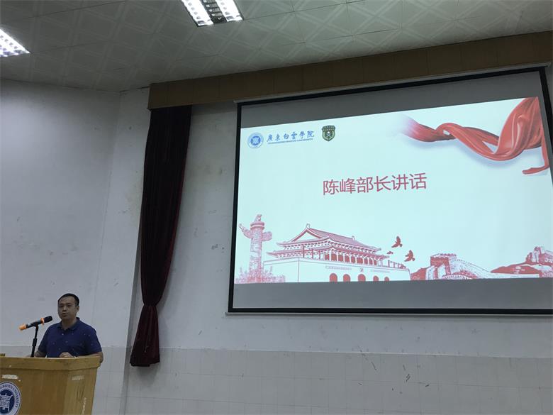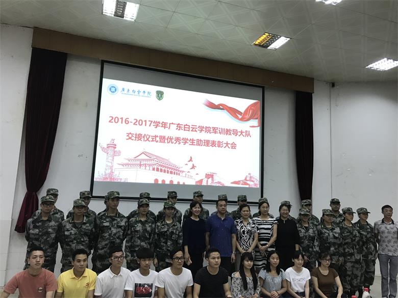 6月20日晚,2016-2017学年学校军训教导大队交接仪式暨优秀学生助理表彰大会在思齐楼-312隆重举行。校武装部(学工部)部长陈峰、副部长邓建侠、各二级学院党总支书记、2016级新生辅导员及各学生助理200余人参加,会议由军训教导大队大队长戴立新主持。