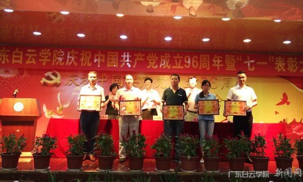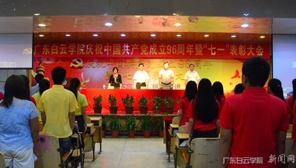 6月29日下午,广东白云学院在西区小礼堂隆重举行庆祝中国共产党成立96周年暨“七一”表彰大会。学校党委书记刘剑锋、校长、党委副书记黄大乾、党委副书记李纯英、副校长刘跃南和全校师生党员欢聚一堂,共同庆祝党的96周年华诞。大会由校党委副书记李纯英主持。
