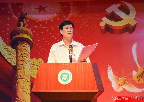 党委副书记、校长黄大乾宣读《中共广东白云学院委员会关于表彰2016-2017学年度先进党组织、优秀党务工作者、学生党员标兵和优秀党员的决定》