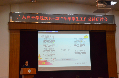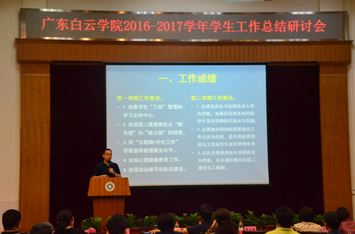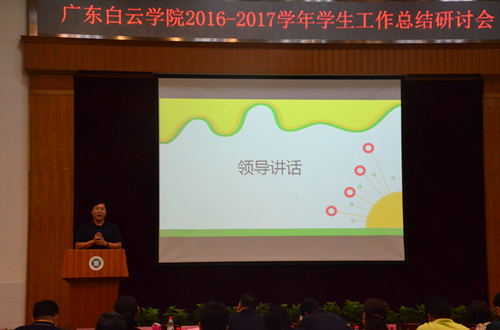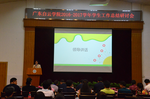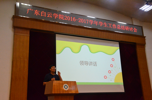 7月10日,广东白云学院学生工作总结研讨会在儒学堂顺利举行。校长黄大乾、党委书记刘剑锋、党委副书记李纯英、组织部、学生处、教务处、就业中心、保卫处、总务处、马克思主义学院等相关职能处室领导、二级学院总支书记、全体辅导员、生活老师共计100余人参加。会议由学生处副处长王晓艳主持。