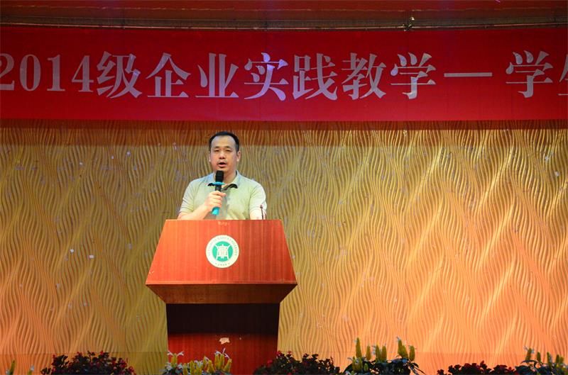 李纯英副书记作重要讲话,她指出我校“3+1”企业实践教学具有三方面的优势:一是长期和300多家企业保持深度合作;二是培养了应用型人才,让学生在干中学,学中干,提高了学生的实践能力;三是提升就业竞争能力,让学生在严峻的就业形势中占领优势。李书记在会上充分肯定了2013级同学在企业实践教学中取得的成绩,并向2014级同学提出要求:继续发挥学生党员、学生干部的骨干作用,在企业实践教学中要以身作则,带头完成各项教学任务;树立终生学习的理念,在实践中要继续学习,立志成长、成才;树立创新意识,在工作中多向企业师傅学习,并不断总结经验,提升工作能力;树立牢固的安全意识,遇到困难要及时跟四导师保持联系,及时解决问题,同时珍惜机会,勇敢到社会实践中去历练,获得成长,成为一名真正的应用型技能人才!(图文/学生处马海停)