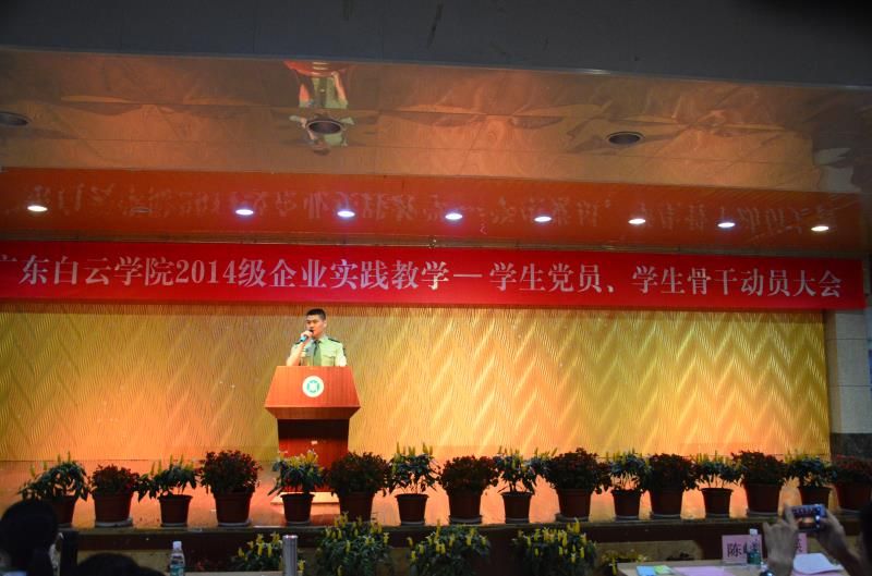 为促进实习工作的顺利开展,强化实习管理,确保实习质量,5月18日下午,广东白云学院2014级企业实践教学学生党员、学生骨干动员大会在信达楼小礼堂隆重举行,校党委副书记李纯英、组织部、学工部、团委负责人、二级学院辅导员代表出席会议,2014级全体学生党员(含13级建筑学)、学生骨干共计500余名学生参加了会议。大会由学生工作部陈峰部长主持。