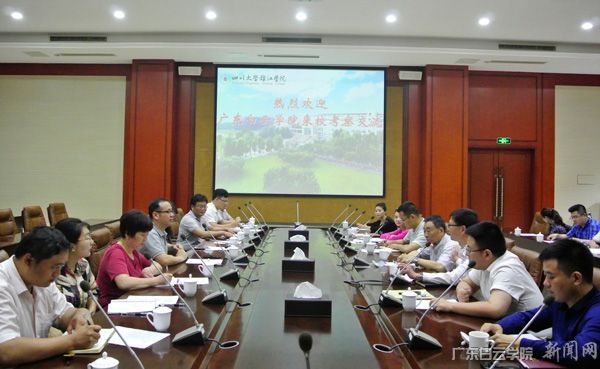 5月24日上午,由我校学生处陈峰处长率队,部分二级学院党总支书记及学生处、团委职能部门主要人员一行11人,赴四川城市职业学院眉山校区就双元育人模式、多校区学生管理、辅导员队伍建设等问题进行访问交流,该院学务部常务副部长欧庆民等领导热情接待。在欧庆民部长的陪同下,我校访问团参观了该校学生服务中心、第一教学楼、学生宿舍等校园设施,并举行了座谈交流会。会上,欧庆民部长致欢迎辞,代表学校对我校一行的到来表示热烈欢迎,并详细介绍了该校的发展历史与办学特色,他介绍说:“四川城市职业学院致力于打造‘专业学院 ’+‘社区学院’双元育人模式,坚持‘以学生为中心 ’的人才培养,力图学生复合发展。”陈峰处长对该校育人理念和人才培养思路表示赞赏,同时也详细介绍了广东白云学院办学模式和人才培养体系,并希望通过此次交流,双方能加强沟通合作,携手共同发展。