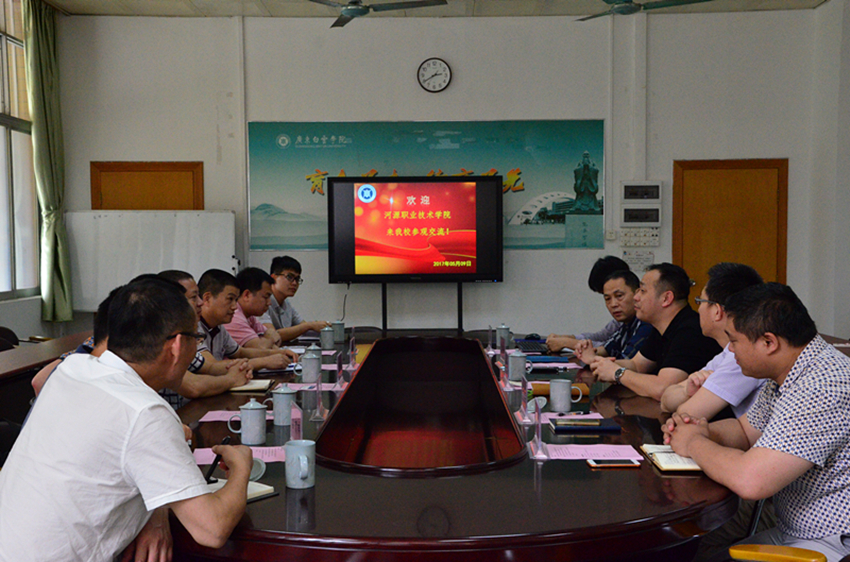 5月9日下午,河源职业技术学院学工处何智聪处长一行6人来我校交流学习。我校学生工作部(处)陈峰处长、教育技术中心张文生主任以及学生处、教育技术中心相关人员接待了来宾。