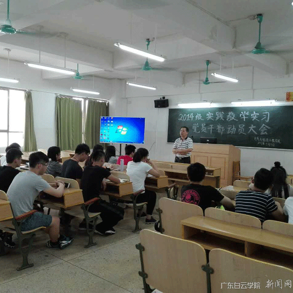 阳鹏书记强调了校外实践教学的涵义和模式,阐述了“3+1”教学模式的重要性和必要性,论证了“3+1>4”的效应,要求学生勇于在校外实践中将理论用于实践,在实践中增长本领、提升能力。同时说明了2014级学生在进行实践教学实习前应该做的事以及在实习期间学校将全个性、全方位指导2014级学生的学习,讲述了身为党员以及学生干部在实践教学中的重要作用,强调了党员干部应带头吃苦、服从安排,带动本班同学如期参与校外实习,并且实习过程中继续发挥好模范表率作用,做好信息员和联络员的角色,确保整个实践教学有序开展。