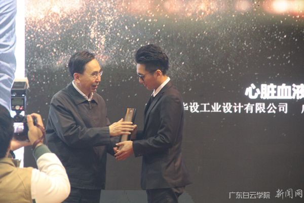 我校2013届工业设计专业毕业生陈大鹤和2013级产品设计专业赵达源、陈华达同学共同研发的作品《心脏血液循环辅助设备》荣获第八届“省长杯”工业设计大赛概念组最高奖项“钻石奖”,图为省长朱小丹(左)为陈大鹤同学(右)颁奖