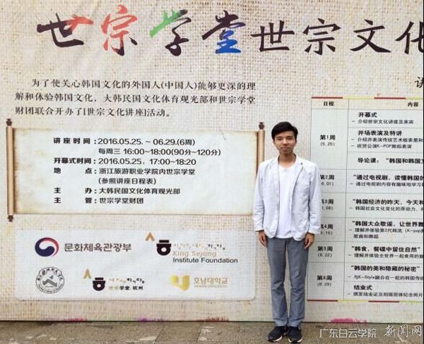 我校2016届毕业生吴聪捷同学在赴韩国湖南大学交换学习期间表现优异,毕业后任职韩国湖南大学杭州世宗学堂