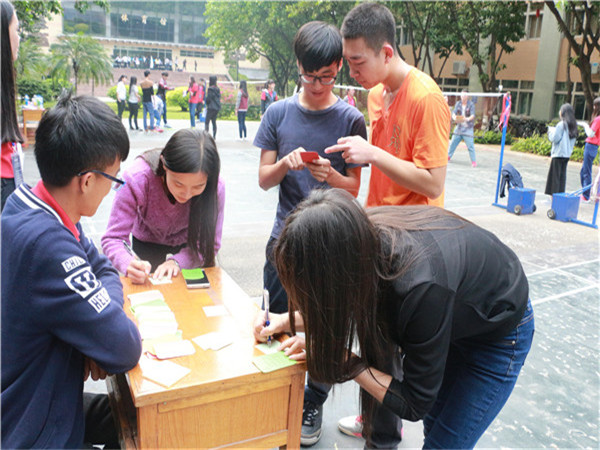 本次大赛从上午8:30开始,下午4:30结束,共分为“千军万马”总部园区、“众里寻他千百度”寻物园区、“沙破浪”园区、“行语行愿”园区、“排山蹈海”园区等,游戏地点分别设在西区足球场、主席台、孔子广场、至善楼、思齐楼等公共区域。与去年不同的是,今年的定向越野增加了“群星璀璨”和“幽灵岛”这两个金币园区。在“群星璀璨”金币园区,参赛队伍通过完成“乌龙闯情关”、“诸葛亮+臭皮匠”和古诗接龙等游戏,最多可得50枚金币。参与者可用金币兑换比赛总用时。在众多支队伍中,“国贸四少”队在此园区获得了39枚金币的好成绩,在总时长中可减去6分30秒。在“幽灵岛”园区,参赛队伍须通过移动若干个零散方块拼凑出完整的二维码,游戏难度较高,耗时较长,但选手们坚持不懈,都顺利完成游戏。