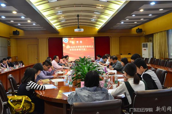 朱巧儿书记听取了介绍后,对我校的党建工作和学生工作给予了充分肯定,指出我校发展速度快,很多学生工作走在了前列,不愧为广东民办高校的排头兵,我校很多的经验和做法值得他们借鉴和学习。随后,她介绍了广东职业技术学院的基本情况,并就学生管理、辅导员队伍建设、学生课外活动平台建设等具体问题与陈峰处长等进行了深入地探讨和交流。