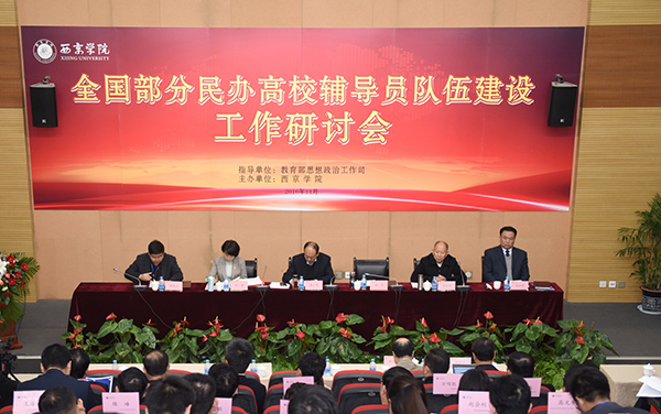 本次工作研讨会由教育部思想政治工作司指导,西京学院主办。在研讨会上,参会代表提出了许多民办高校辅导员队伍建设针对性强、实用管用的好思路、好办法,集思广益,研讨会收到了良好效果。西京学院、河北传媒学院、广东白云学院、北京城市学院、黑龙江东方学院、吉林华侨外国语学院、武昌理工学院、武汉生物工程学院、三江学院、黄河科技学院、江西科技学院、山东英才学院、宁波大红鹰学院、四川城市职业学院、仰恩大学等15所高校在研讨会上围绕“民办高校如何加强辅导员队伍建设工作”分别作了经验交流。