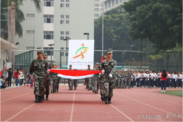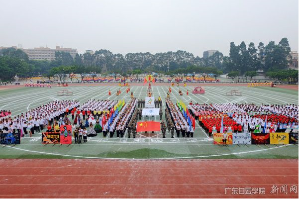 在热情奔放的运动员入场式和庄严肃穆的升国旗、奏国歌仪式后,由黄大乾校长为运动会致开幕辞。黄大乾校长代表学校董事会和党政领导对运动会的举办表达了热烈的祝贺,并对精心筹备运动会的工作人员表示了衷心的感谢。他认为,一年来,广东白云学院体育运动事业欣欣向荣、成绩斐然。说明我校群众性体育运动和民族体育运动开展得有声有色;师生们的优异表现展示了学校体育运动事业的蓬勃生机,表现了我校体育竞技实力,凸显了白云学子敢于拼搏、追求卓越的动人风采,也是学校实施体育俱乐部教学结出的累累硕果。为确保运动会有序、高效、顺利地进行,他还向师生门提出了三点希望,并宣布广东白云学院第十八届运动会开幕。