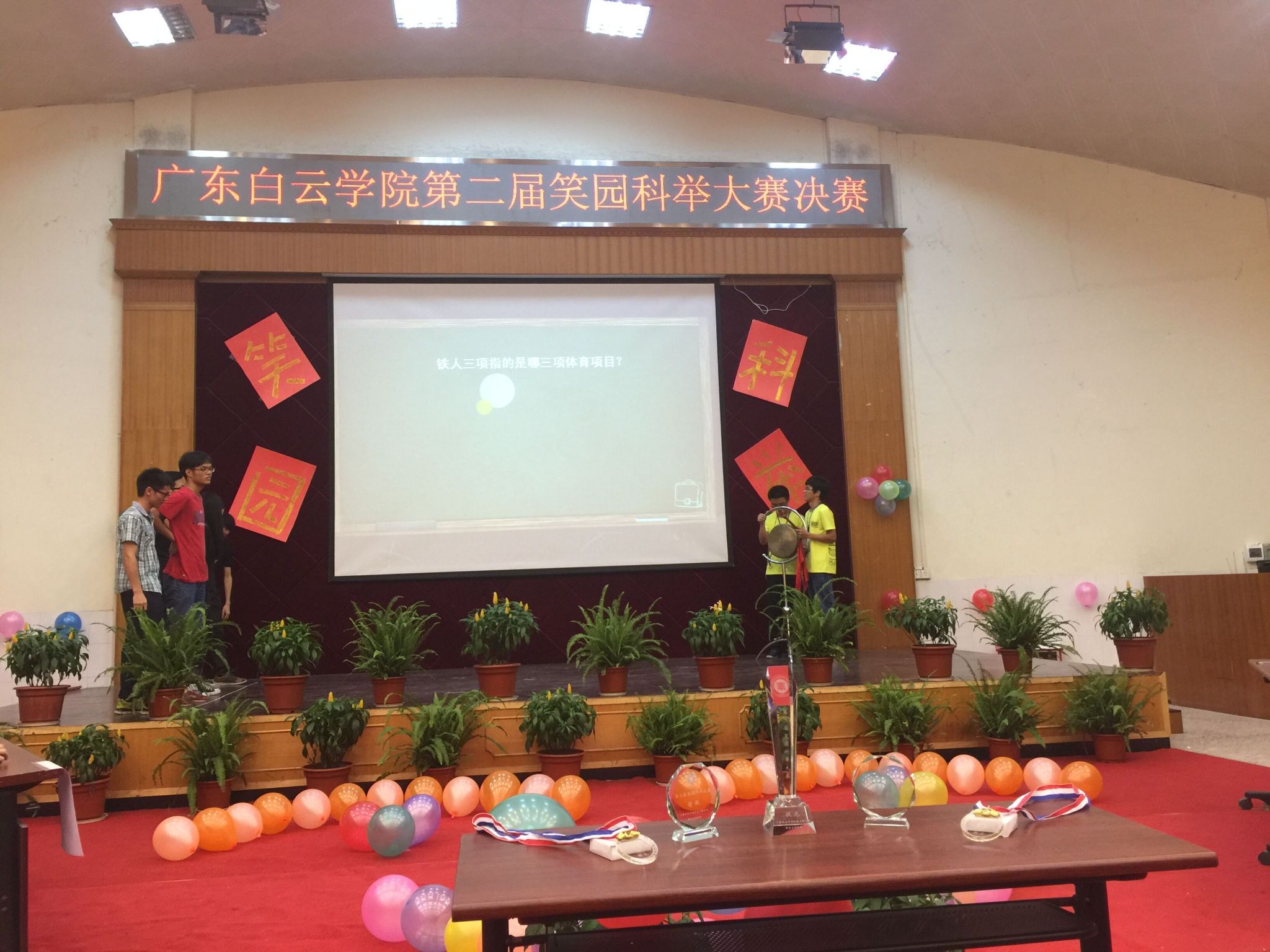 2016年5月31日晚19:00,以“歌颂欢乐,笑颜青春”为主题的广东白云第二届笑园科举大赛决赛在儒学堂隆重举行,机电工程学院党总支刘芳文书记、机电工程学院团总支熊蓉书记、各老师、参赛团队、团学干部及200多名学生前来观看大赛。