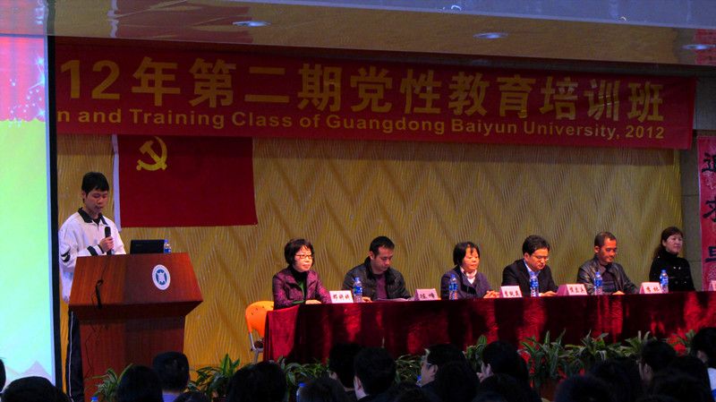 为了深入学习贯彻党的十八大精神,对学生党员及表现优异的入党积极分子进行教育与培训,帮助他们进一步加深对党的认识,端正入党动机、增强党性修养, 11月29日广东白云学院在小礼堂举办了2012年第二期党性教育培训班开班仪式。省教育厅督导专员、校党委副书记李纯英,党委委员、副校长侯立兵,学工部部长陈峰、副部长李林、岳增玲、各二级学院党总支书记及学生支部书记出席培训班仪式。仪式由党委组织部部长邓妍妍教授主持。