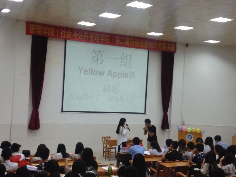 在庄严的校歌声后,比赛正式拉开帷幕。本次比赛共分两个环节,第一环节为小品演绎,四组参赛选手通过形象生动的故事情节,采用幽默又有内涵的表达方式,将法律道德知识贯穿其中,倡导社会新风尚。第二环节为法律知识竞答,分别采取选择题、答辩的形式考察选手对校规校纪以及法律道德知识的认识。最后,团总支书记赵浡彤对本次比赛进行点评,希望大家从小处做起,在平时的学习生活中严格要求自己,遵守校纪校规,以身作责。