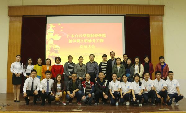 大会在庄严的白云校歌中拉开帷幕。党总支副书记龙晓凤作动员讲话,她说,作为新一代的大学生,文明修身是一个循序渐进的过程,贵在坚持,要从小事做起,从身边事做起。同时,龙副书记介绍了学校“文明修身工程”开展的背景、活动内容、活动细则及奖项设置等,倡导全体学生通过“文明修身工程”加强自身修养,做文明人,行文明事,争做优秀的大学生。