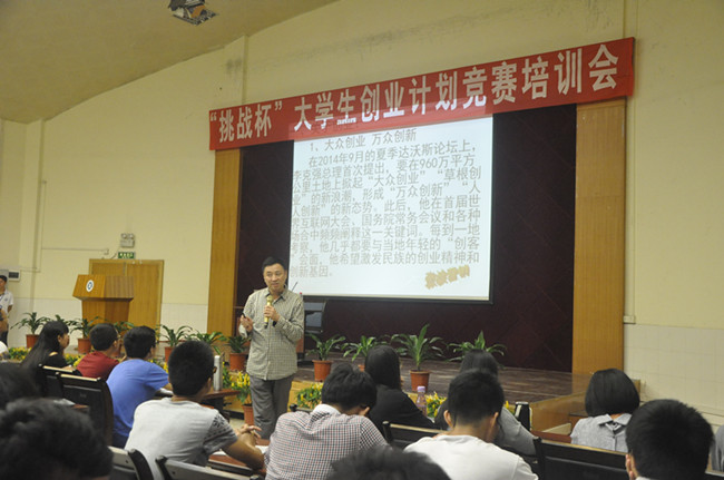 培训会上,张教授形象而生动地讲述了如何寻找创业项目并制定创业计划,强调大学生要积极响应李克强总理在政府工作报告提出的推动“大众创业、万众创新"的理念,并用简明扼要的语言阐述了“大众创业,万众创新”的本质。他还列举了许多现实案例,图文并茂,带领学生深入学习如何进行创业创新。在互动环节中,现场气氛活跃,选手们积极请教提问,张教授以切身经历为其讲解。最后,本次培训会在一片掌声中落下帷幕。