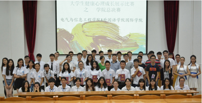 为了使2015级新生更好地适应大学生活,创建促进我校大学生心理健康成长的良好氛围,电气与信息工程学院与外国语学院国际学院联合举办了以“远离抱怨﹒微笑成长”为主题的大学生心理健康成长之大学生健康心理成长展示比赛,在两院心理健康指导邓强老师、卢娜老师的莅临指导下,于10月28日下午7点整,电气与信息工程学院全体2015级学生相聚于思齐楼312教室,共同聆听这场盛大的PPT展示演讲比赛。