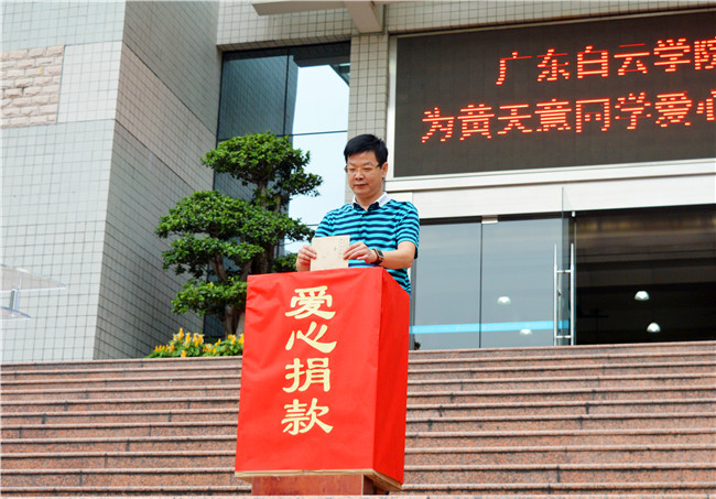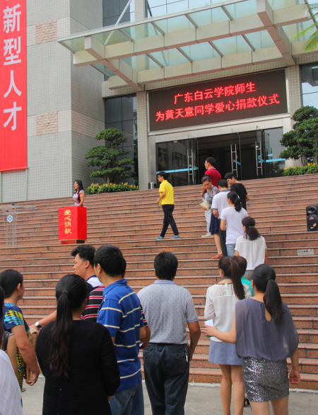 近日,广东白云学院大学生黄天意同学因患病毒性脑炎在医院重症病房抢救的事情牵动着白云大家庭里所有人的心,学校董事会和党政领导更是高度重视,董事会决定提供部分经济资助,学校党委于9月28日向全校师生发起爱心倡议,倡议白云大家庭的每一位成员伸出友爱之手,献上一份爱心,心连心帮助黄天意同学战胜病魔。