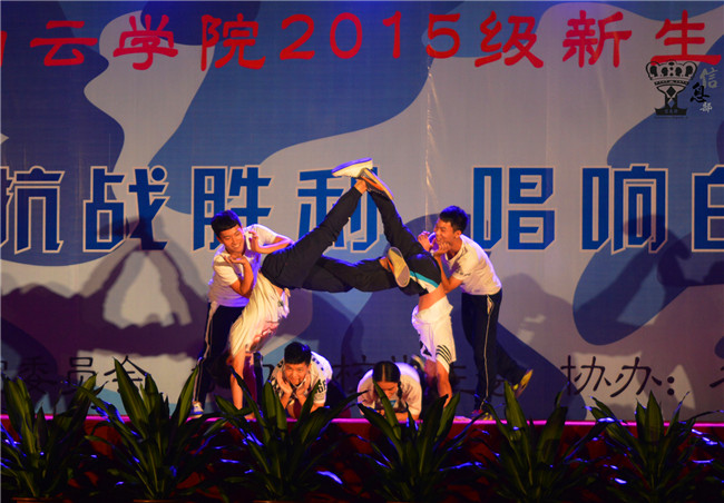 为欢迎2015级新生,共同迎接美好的大学生活,广东白云学院在西校区运动场举行了以“庆祝抗战胜利,唱响白云之旅”为主题的迎新晚会。9月17日晚,学校运动场流光溢彩、熠熠生辉。晚会开始前,各营队进行拉歌,营造出了热烈浓郁的演出氛围。