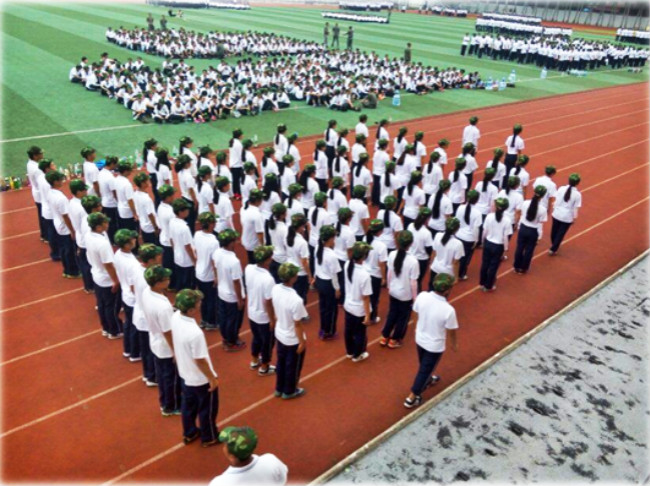 虽然顶着炎炎烈日,但是同学们还是整整齐齐地站军姿,走齐步,踢正步等。纵使我们的脸上的汗水直流,纵使我们的胳膊酸痛,纵使我们的双脚麻木,但我们还是坚持下来了。