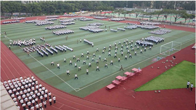 灿烂明媚的阳光,映照在每个人的脸上。这是军训的第六天,那整齐有序的步伐,那昂头挺胸的气魄,那嘹亮恢弘的口号,无一不在展示我们这些天训练的成果。是的,它让我们接受了一次意志的沐浴,精神的洗礼。漫长的军姿、踢不完的正步、挨不完的训斥,使脆弱的我们慢慢变的坚强,严肃的训练场使我们每个同学英姿飒爽,没有矫揉造作,有的是勇敢,是坚强。
