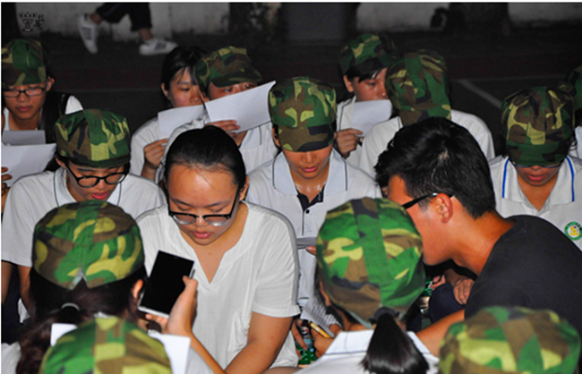 到了晚上,教官教我们唱歌,气氛十分活跃。后来还有许多师兄师姐带我们唱校歌,感觉收获了许多。虽然辛苦,但也充满欢乐。教官是个很幽默的人,所以训练过程并不十分枯燥。