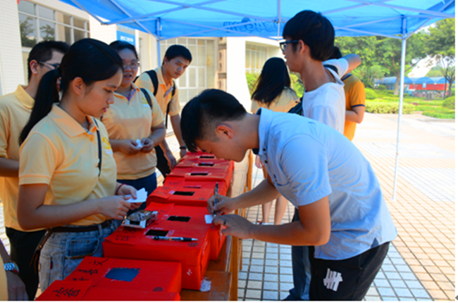 在教师节即将到来之际,建筑工程学院党总支策划了“最美教师,我来点赞”教师节系列活动,并在前期工作中,收集了我院全体老师和辅导员的生活照和教学宣言,通过微信投票和现场投票的方式,最终按照微信投票占30%,现场投票占70%的比例算出总分,选出“最美教师”。9月10日当天下午2点30分,艳阳高照,我院党员同志忍住炎热,布置好现场投票的场地,摆好25位教师的投票箱,迎接同学们的到来。3点30分一直持续到下午5点30分,我院的同学,纷纷走向投票处,在工作人员的解说下,在纸上写下自己的学号,并在投票箱中为自己心中“最美的教师”投下肯定的一票。同时,同学们在工作人员的指引下,来到“表白墙”用笔在便利贴处写下想对老师诉说的千言万语。以大地为纸,江河为墨,也写不尽对老师的感谢之情,栽培之恩,唯有用最简单的方式表达我们学生心中最真诚的祝福。