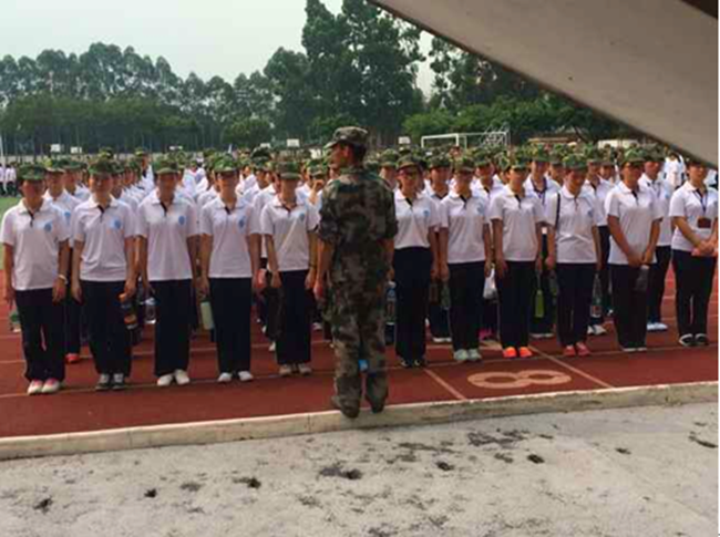 蓝天下的我们并不像白云一般悠闲地漂浮,而是听从着教官的口令:抬头挺胸,双腿并拢,双手测放在腿边…早上的阳光还算温和,然而午后的阳光在风雨过后变得更加灿烂地照耀着为保持军姿而一动不动的我们,热气源源不断的袭来,而不敢动的我感汗流浃背,闷热的气息几乎让人喘不过气来