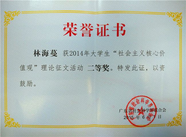 这次征文活动由广东省省委宣传部、广东省社科联联合举办,旨在推进大学生自觉践行社会主义核心价值观,提升大学生的思想道德素质,广东白云学院能获得较多奖项,得益于学校历来高度重视社会主义核心价值观的教育,用科学理论武装学生的头脑,不断探索社会主义核心价值观教育的有效途径,确保我校社会主义核心价值观教育的实效性。