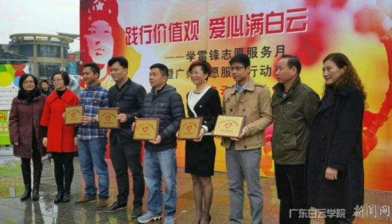 3月5日上午,白云区文明办、区创建办、团区委联合主办的白云区学雷锋志愿服务月暨广州志愿服务行动日主题实践活动在新市街百信广场正式启动,广东白云学院被授予白云区志愿服务友好合作单位荣誉称号。启动仪式上,相关组织部门号召全区各单位职工、学生、志愿者及广大市民积极践行雷锋精神,开展多样化的志愿服务,为建设幸福广州、和谐广州作出积极贡献。