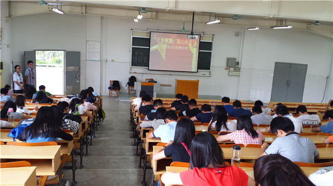 2014年10月13日,旨在筛选出知识面宽广的党员积极分子,增进各个党支部的学生党员对中国共产党的光辉历史的了解,共青团广东白云学院委员会举办主题为“齐学党团识,红旗飘白云”党团知识竞赛,初赛以笔试的形式在思齐楼举行,来自八大学院的各个党支部的党员与积极分子纷至沓来,300多个来自不同学院的白云学子聚集在此,校团委素质拓展部的全体干事协助第一党支部将参赛选手按学院分配到相应的课室,并安排好工作人员作为监考人员。