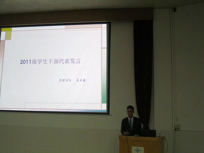来自建筑工程学院的2011级学生褚炜代表党员发言,他号召全体党员同学一定要在企业实践教学中起先锋模范带头作用,真正当好企业实践教学的排头兵。