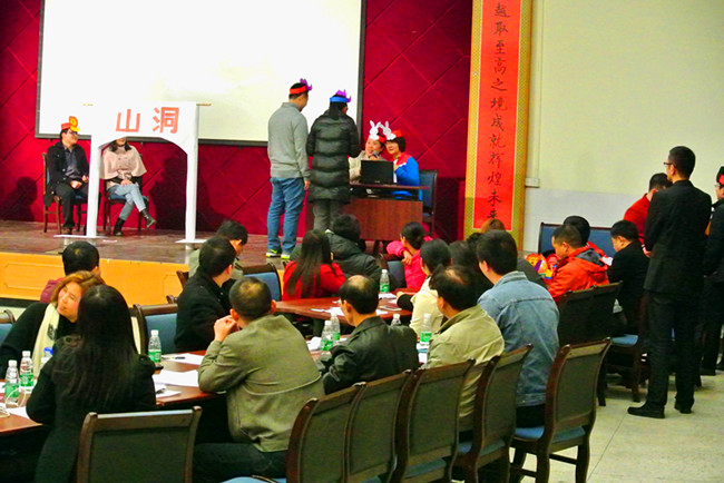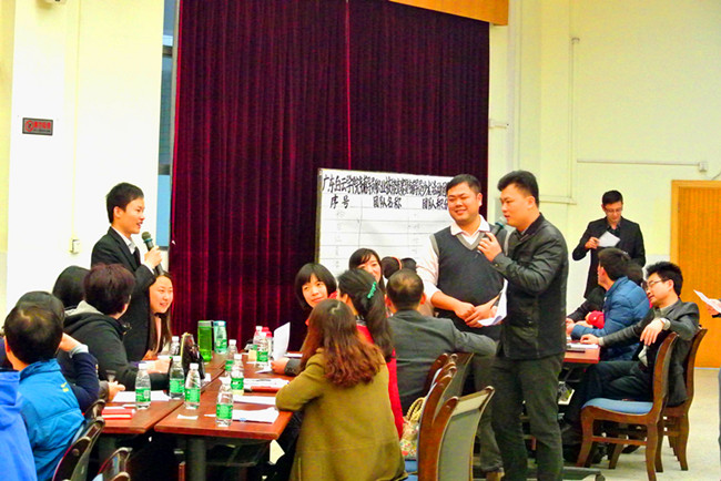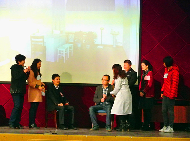 活动的第二环节是情景剧表演,有两个剧情梗概,由队长抽签选择其一并确定出场顺序:一是兔子和狮子的故事,一是学生打架事件。组长抽签后由团队讨论如何根据剧情介绍进行角色扮演,各队自行分配角色,人人参与。各队通过10分钟的讨论,根据组织者提供的角色扮演道具进行了精心的准备:剧情展开、分配角色、表演台词、道具加工与制作等等,在简短的准备后,各队一个个绘声绘色的场景呈现在大家面前,语言动作幽默风趣、知识技能运用契合实际,在搞笑开心的温馨中、在欢声笑语的气氛里,我们看到了包括辅导员在内的全体学生工作者在处理实际问题时的方法与技巧,也使大家在愉快的游戏氛围中触动了工作的灵感,受益匪浅。