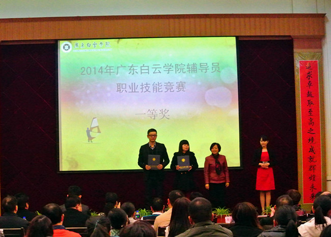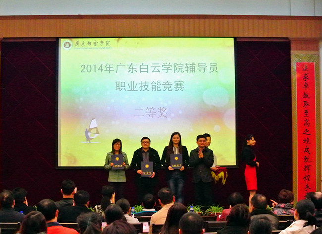 为贯彻落实省教育厅《关于举办广东省高校辅导员职业技能培训暨竞赛活动的通知》,进一步提升我校辅导员专业素质,促进辅导员队伍建设的专业化、专家化和职业化,3月4日、6日,学生处在儒学堂先后举办了“2014年广东白云学院辅导员职业技能竞赛”的笔试和技能展示两个环节的竞赛活动。校党委李纯英副书记、侯立兵副校长作为嘉宾及组织部邓妍妍部长、基础部张美娟老师等7位评委老师出席技能展示竞赛活动,该环节由团委赵勇敢老师主持。