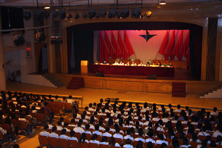 2013年9月22日下午15:00,艺术设计学院在东区大礼堂召开2013级新生入学教育大会。建筑工程学院陈华钢院长、副院长熊玛琍、院党委书记李政、出席大会,并作入学教育报告,办公室主任李利鹏、各系主任辅导员和班主任及2013级新生参加了大会。大会由党委书记李政主持。