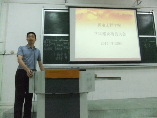 为了提高学生自律意识,营造优良的学习氛围,进一步加强班级建设,机电工程学院于2013年9月29日晚上8点,在思齐楼306举行机电工程学院学风建设动员大会,各党支部党员,各班班长、团支书以及团学代表参加了此次大会。