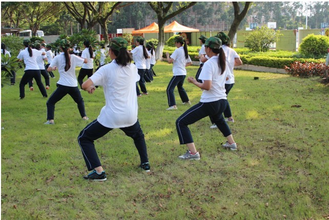 每天,我们都在努力地学打拳,不断复习重复,重复再复习,大大的运动场上,有四千多双眼睛随时注视着我们不能敷衍,不能草率了事。好吧,我们表演方队就要有气势,才能威震四方。作为第二个上场排练的我们,鼓足了干劲,吼出我们的气势。虽然动作依旧有些瑕疵,但我们教官相信,待到正式表演的那一天,我们的潜能一定会发挥出来。徐教官,请一定坚信,您的努力没有白费,我们一直做得很好!