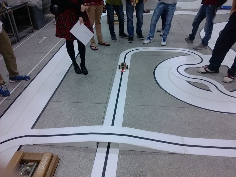 比赛由8支参赛队伍组成,共有两个程序,即小车分别环绕设定轨道作正、反两次运行,由工作人员记录时间并选取最好的成绩。比赛过程中,选手们积极思考,相互借鉴学习,及时对自己的作品进行加工调试,比赛现场充满了浓浓的学习氛围及探索精神,就连赛场的工作人员也对此产生了极大的兴趣。精彩的比赛还吸引了不少老师和同学们的围观,大家都深刻感受到了智慧的火花碰撞出的绚丽!
